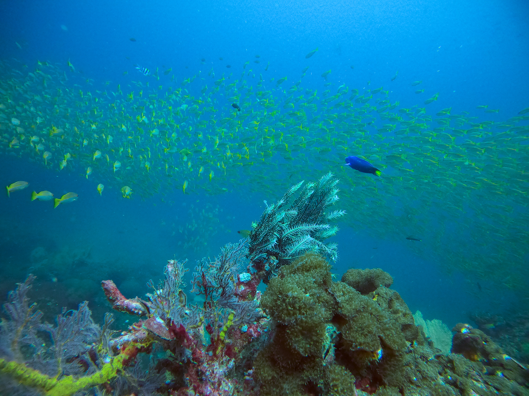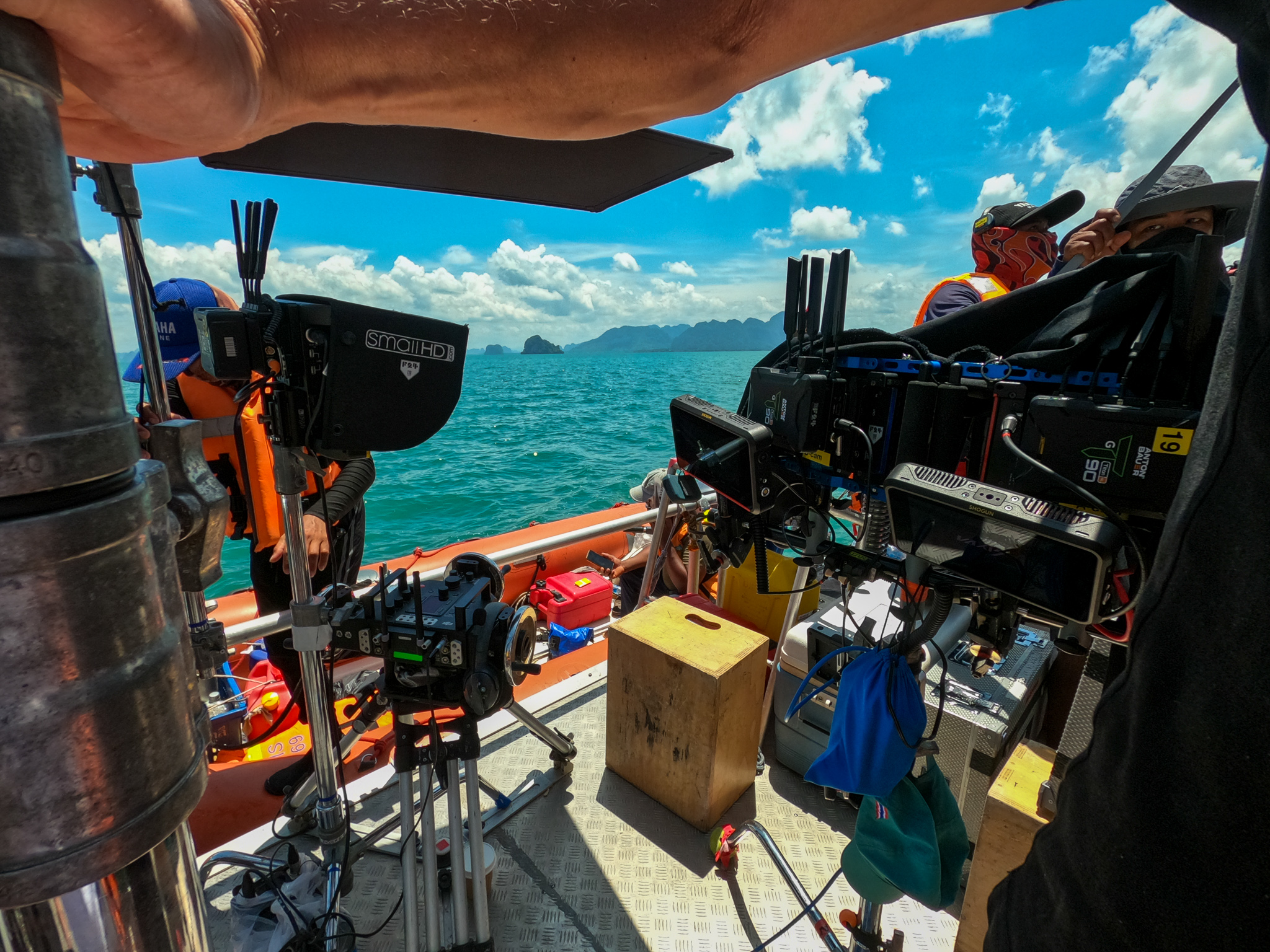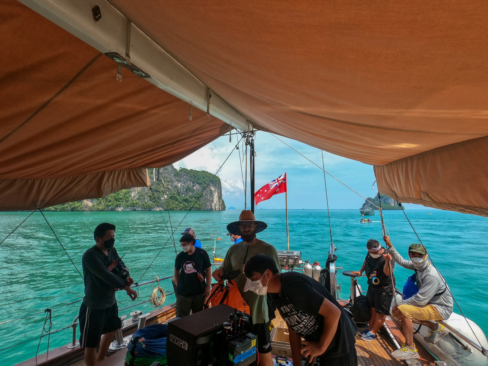 Thursday. On the boat out in the blue waters today. I had a well needed rest last night so today feel much fresher and ready to take on the day. Yesterday after wrap we had a nice chat with Hans overlooking the garden of our new hotel, there was also some sort of ceremony going on for about 5 minutes, pretty symbolic. But somehow today felt more peaceful because of it.